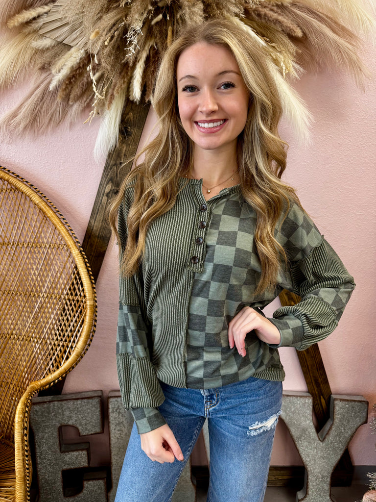 Patchwork done right—this henley pullover pairs ribbed and checkered prints in a design that's totally one-of-a-kind. Every piece tells its own story with a playful mix of textures and patterns. Button front, drop shoulders, and a relaxed fit make it easy to style, while exposed stitching and a banded hem give it that handcrafted vibe. Perfect for anyone who'd rather stand out than blend in.